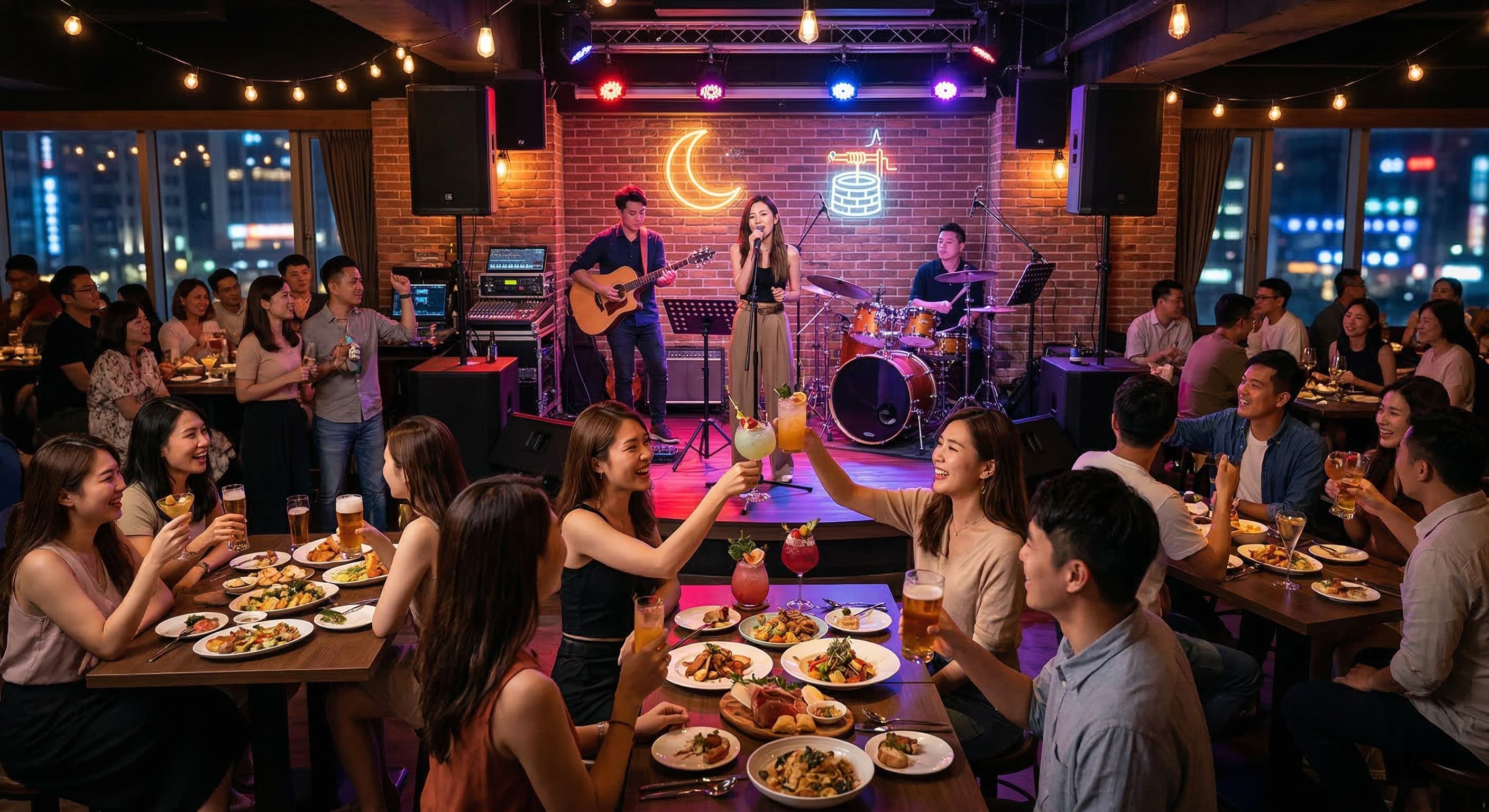去大型演唱會,你只能遠遠望著舞台上的偶像;而在 Moonwell Bar 這樣的現場演唱餐酒館,你與音樂人之間的距離近在咫尺。這種「零距離」的親密感,正是駐唱演出最迷人的精髓所在。我們的舞台不設高聳的藩籬,歌手與樂手們就像是為你專屬演出的朋友。